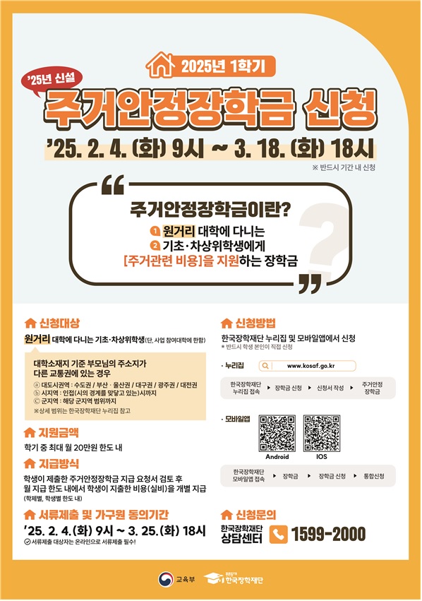 대학생이라면 놓칠 수 없는 기회! 주거비 부담을 덜어주는 주거안정장학금을 꼭 신청하세요.