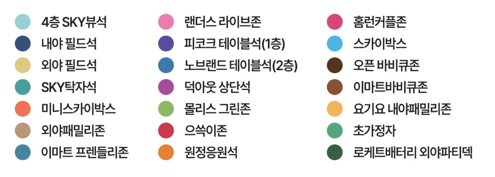 - 외야 패밀리존 → 요기요 내야 패밀리존 → 바비큐존